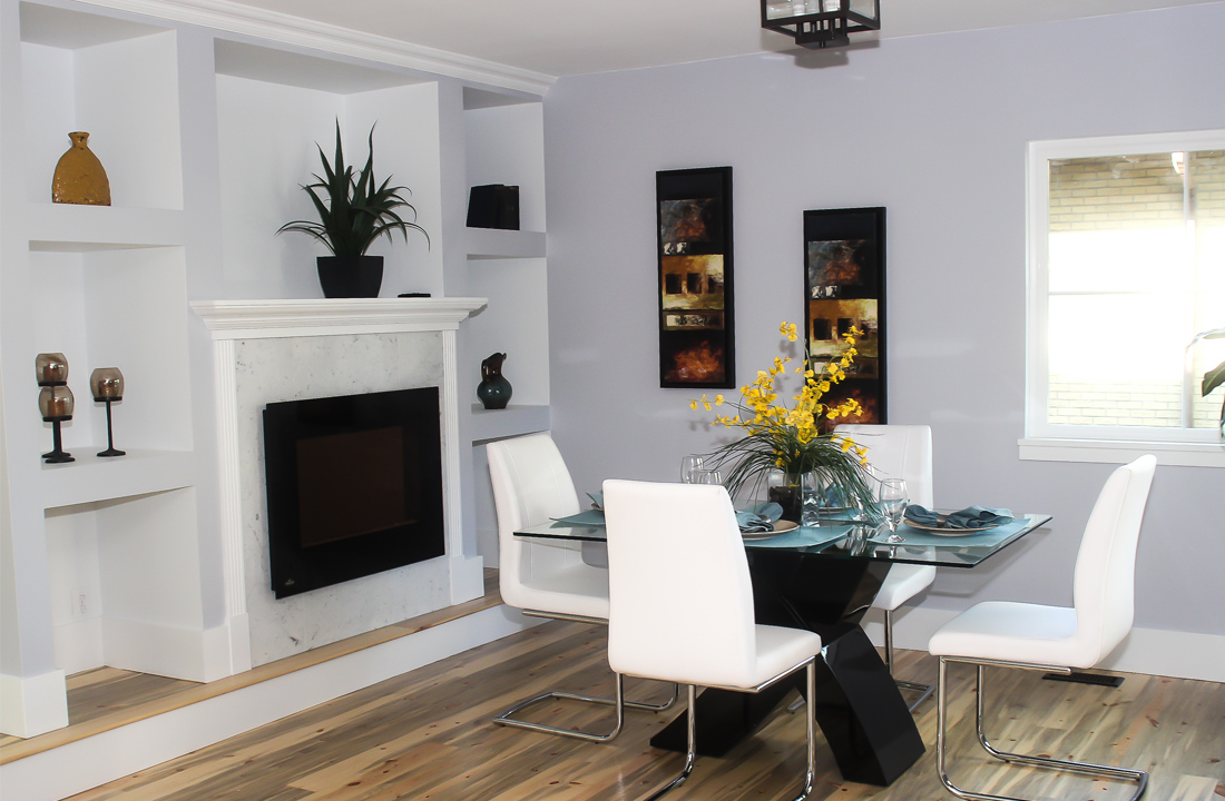 Renovated house in Louisville Colorado. A piece of the front of the original house was saved and an addition including a second floor was added to the back side. The floors are wide plank blue beetle kill pine finished with a clear stain. The kitchen has white shaker style cabinets with granite countertops. The island is hickory three inch butcher block.